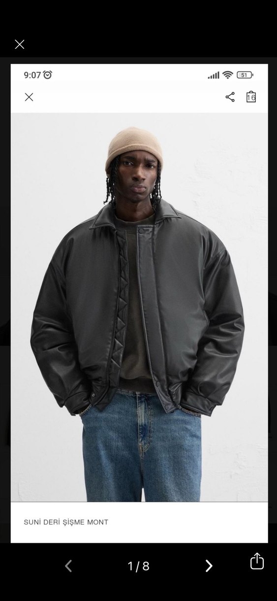 Siyah deri, yüksek yakalı ve uzun kollu erkek ceket. Bol kesim ve normal boyda, sokak stiline uygun, günlük kullanıma rahat ve şık.M beden