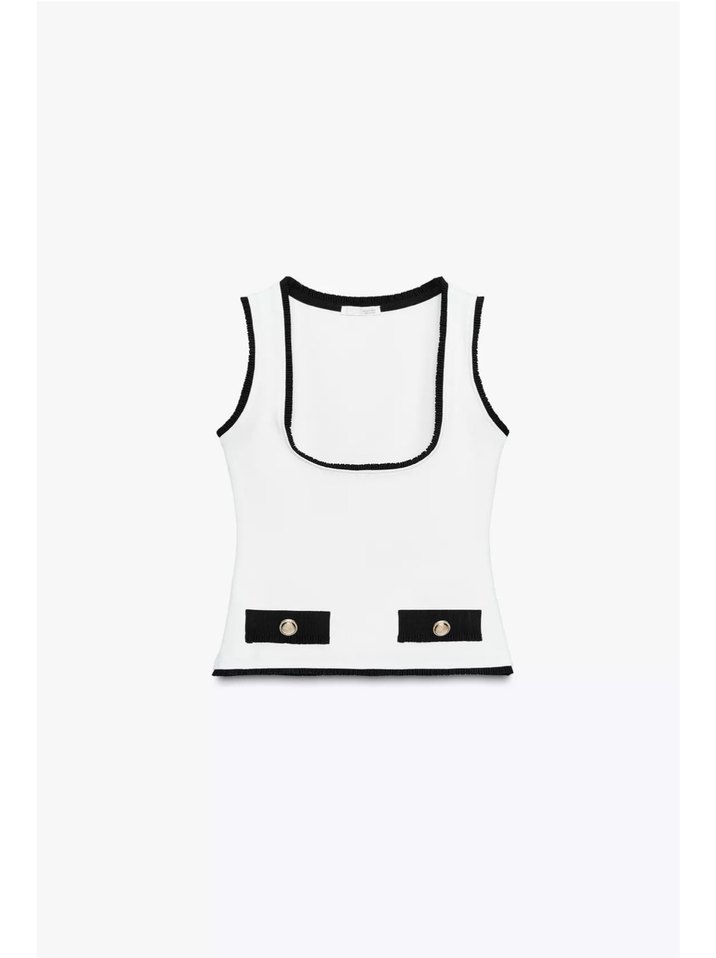 Zara Siyah Detaylı Beyaz Kemerli Kolsuz Üst