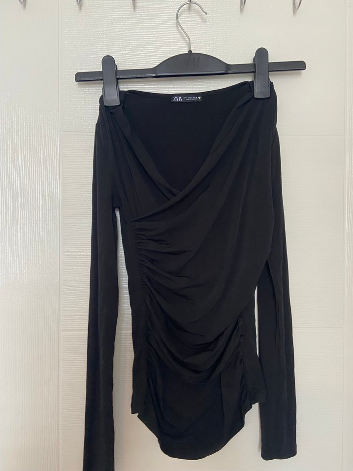 Zara Siyah Drapeli Uzun Kollu Kadın Bluz
