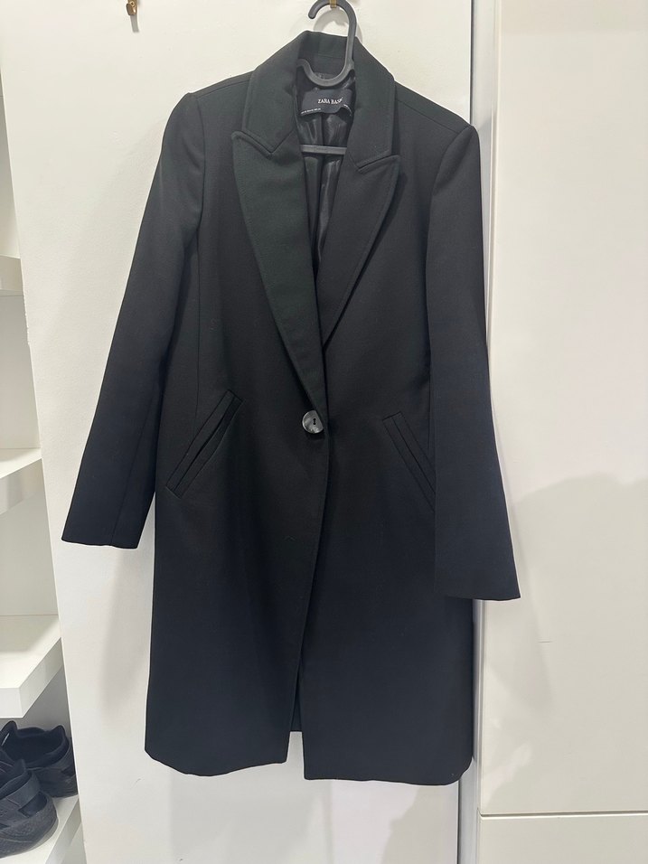 Zara Siyah Düğmeli Midi Kadın Klasik Ceket