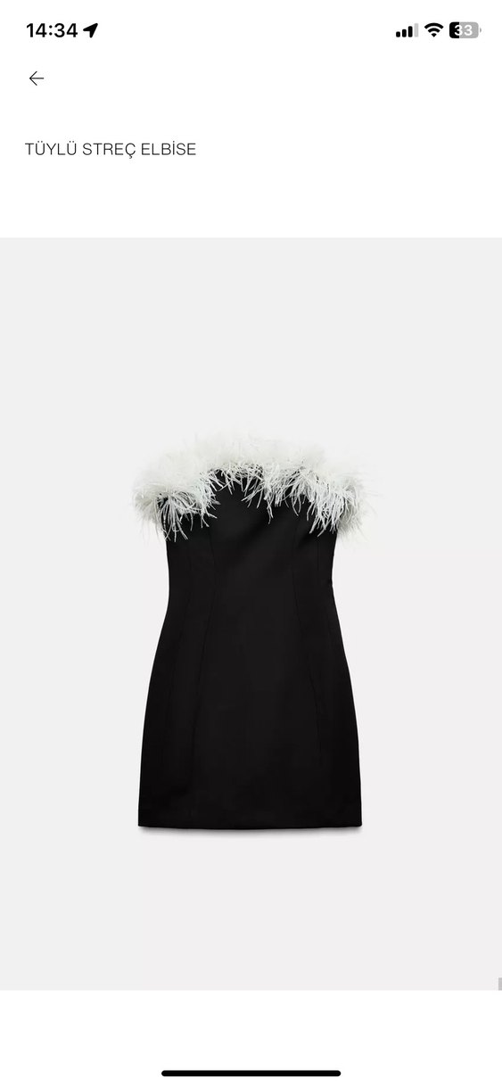 Detaylı fotoğraf ve video isterseniz koyarım.Siyah, straplez ve tüylü detaylı bu mini elbise, gotik tarzı minimalist nakışlarla birleştirerek parti için şık bir görünüm sunar.