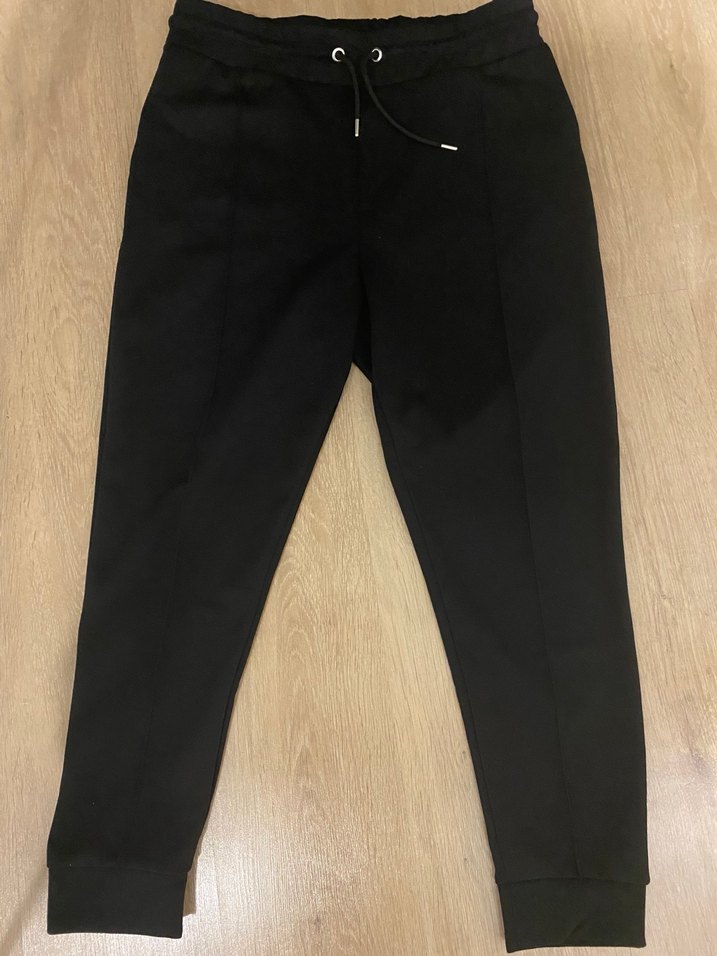 Siyah renk, regular fit kesim ve midi boyda, yumuşak sentetik kumaştan üretilmiş erkek eşofman altı. Günlük kullanımda zahmetsiz şıklık sağlar. Likralı ürün, bel 43, boy 100,, paça 15-14. Ürün sadece 1 kere deneme amaçlı giyilmiştir sıfırdır.