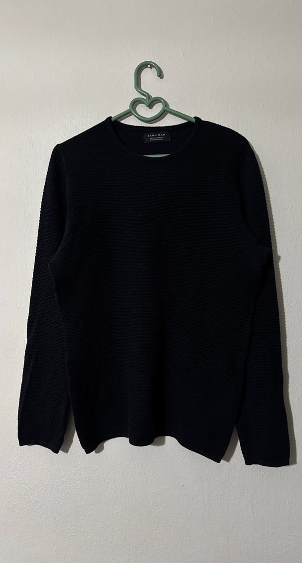 Siyah, uzun kollu ve bisiklet yaka, normal kesim erkek triko kazak. Minimalist ve normcore tarzıyla günlük kullanıma uygun. S Bedendir Kusursuz Defosuzdur %50 pamuk %50 akrilik