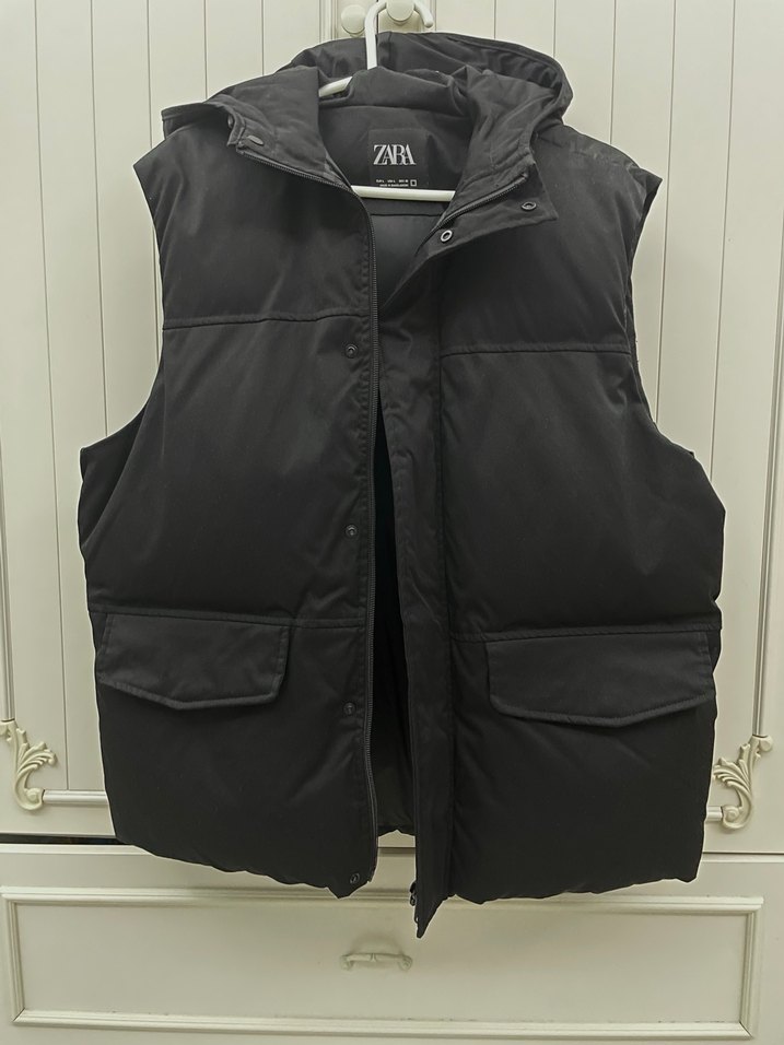 Zara marka, siyah renk kapüşonlu şişme yelek. Fermuarlı ve çıtçıtlı kapama detaylıdır. Kendi sitesinden alındı. Çok çok az giyildi. Tertemiz hiçbir sıkıntısı yok. Kargo ve kesintilerden dolayı fiyatta ciddi bir pazarlık beklentiniz olmasın lütfen. L bedendir. İki koltuk altı arası 64 cm. Omuzdan eteğe 70cm. Bedeni hesaplarken ürünün şişme yelek olduğunu dikkate alınız lütfen.