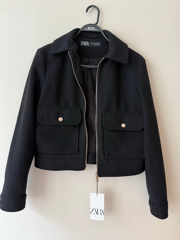 ZARA Siyah Fermuarlı Kısa Kadın Ceket