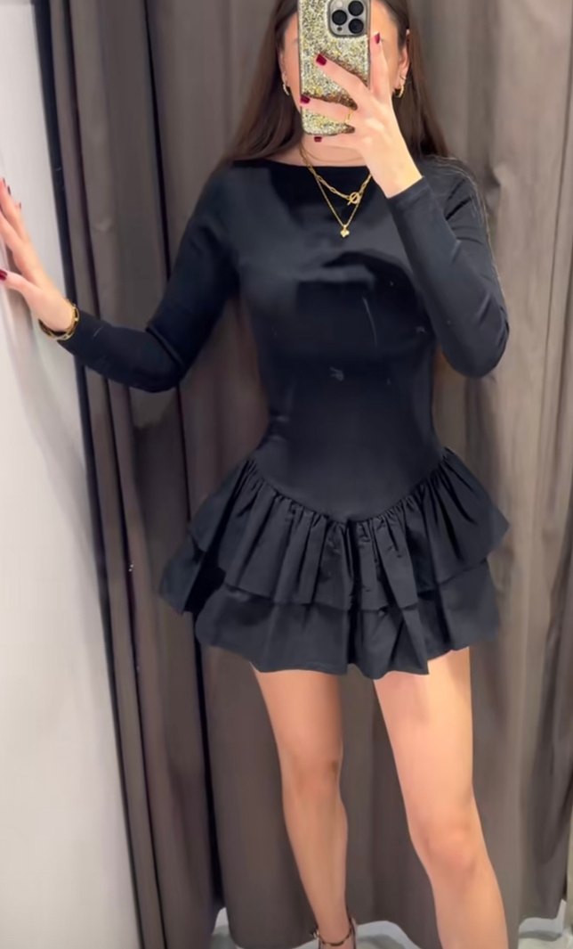 Zara siyah fırfırlı elbise. Hiç giymedim bana küçük geldi iade süreside geçmişti o yüzden satıyorum etiketli.