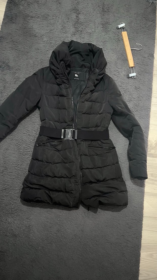 Kemerli, zara kemerli su ve rüzgar geçirmez kaz tüyü kışlık mont kapüşonu yoktur boğaz kısmı geniştir kalçayı kapatır sadwce kemerinde aşınma vardır resimlerde belirtilmiştir