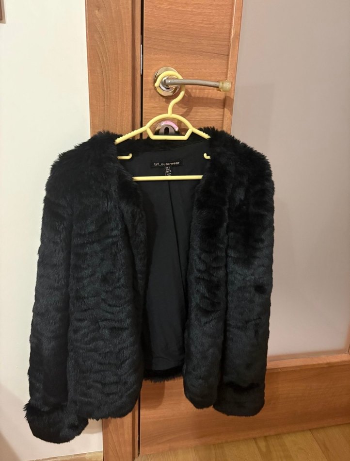 Zara Siyah Kadın Kürk Detaylı Midi Ceket