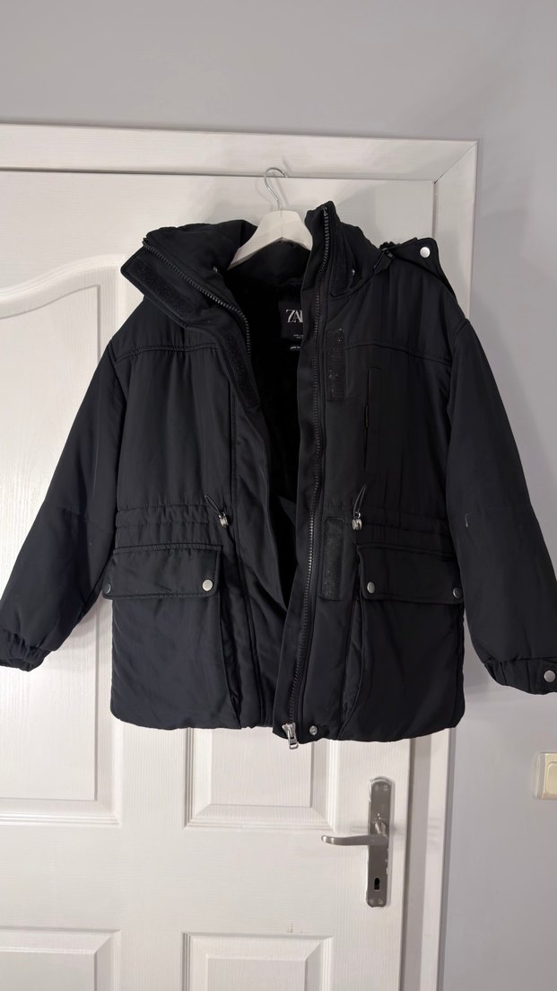 Zara kadın siyah mont. Kapüşonlu modeldir. İç kısmı yumuşak tüylü astarlıdır. Ceplidir. Çok İyi durumdadır.