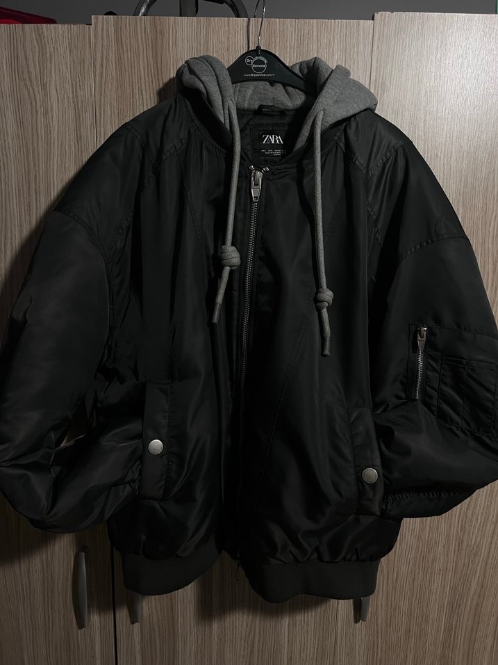 Zara Siyah Kapüşonlu Oversize Erkek Ceket