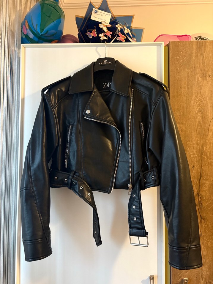 Zara Siyah Kemerli Kısa Deri Biker Ceket