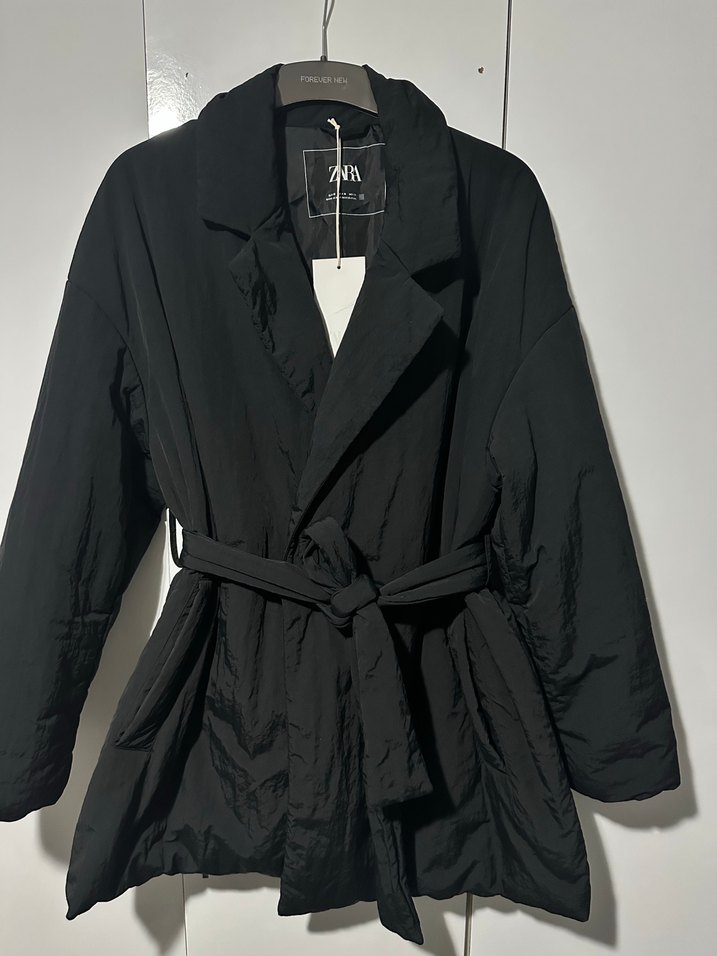 Siyah kemerli, notched yaka ve askılı kollu midi kadın mont.Yumuşak keten kumaştan, günlük kullanım için regular fit uygun. Minimalist ve sokak modası tarzı.