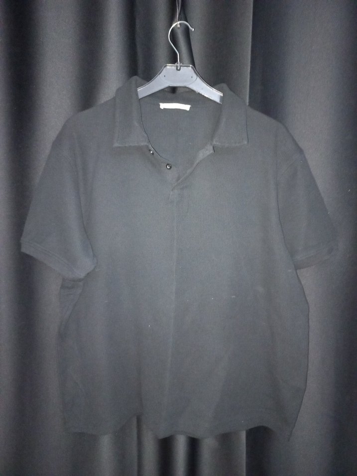 ORİJİNAL ZARA Koyu Siyah Keten Polo Yaka Tişört L Beden.