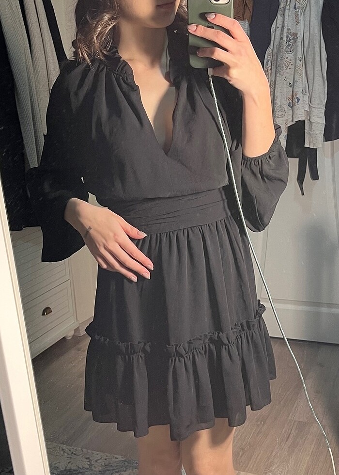 Zara S beden siyah kısa boy elbise beli ve kolları lastikli etek boyu kemer altından 40 cm astarlı