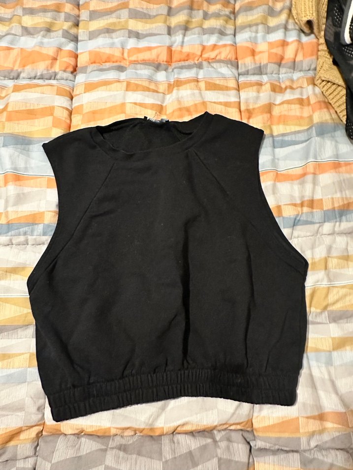 Zara Siyah Kolsuz Crop Top Yüksek Yaka