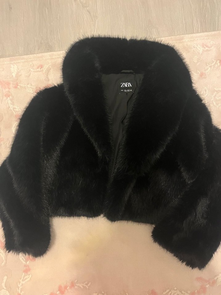 Bu fitted Zara ceket, uzun kollu ve kesik yaka detaylarına sahiptir. Yumuşak tüylü kumaştan üretilmiş, midi boyda ve siyah renktedir. Rahat ve gotik tarz için uygundur.