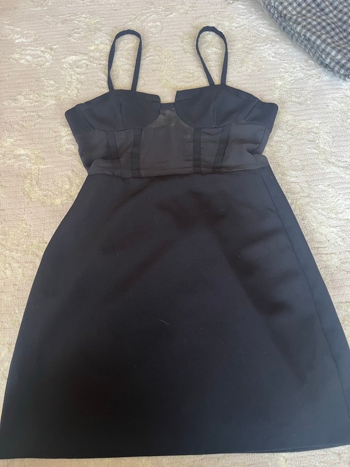 Siyah renkte, askılı goth esintili midi elbise. vücuda oturan kesimiyle romantik akşamlar için uygun.Mevzuniyette bir defa giydim