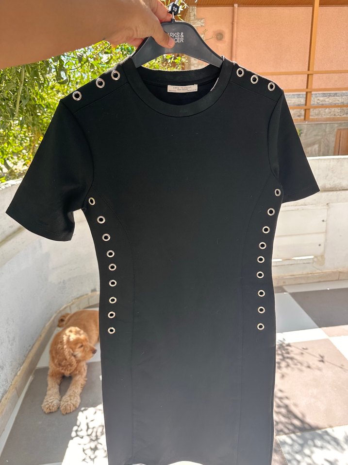 Zara Siyah Midi Kadın Kısa Kollu Elbise