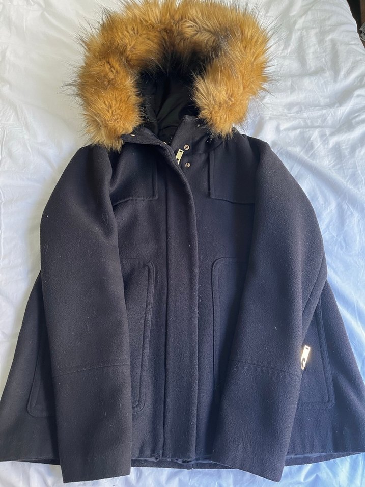 Zara siyah Midi Kadın Kürklü kaşe kaban