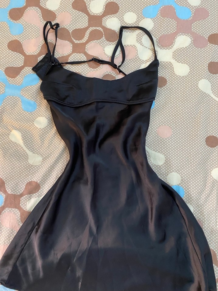 Siyah, ince askılı zara elbise