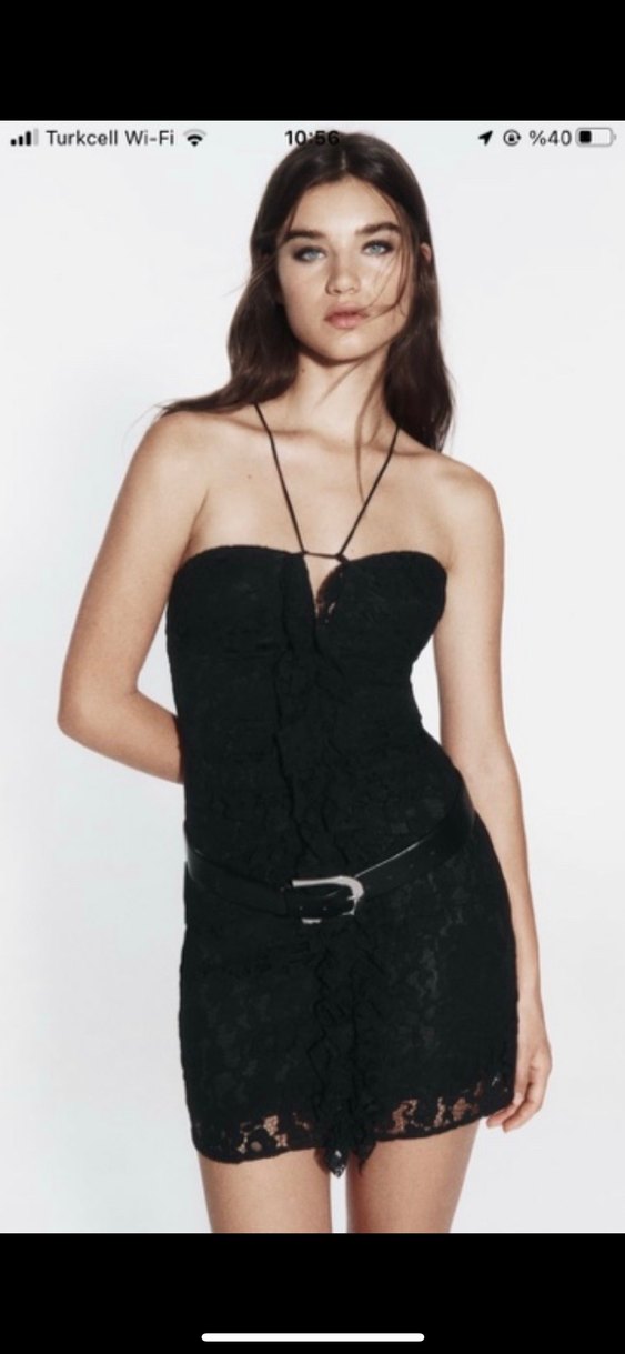 Dar kesim siyah mini kokteyl elbisesi, straplez yaka ve ince askılı. Kemer detaylı, gotik tarzda, romantik akşamlar için uygun.2 kere giydim tertemiz ürün