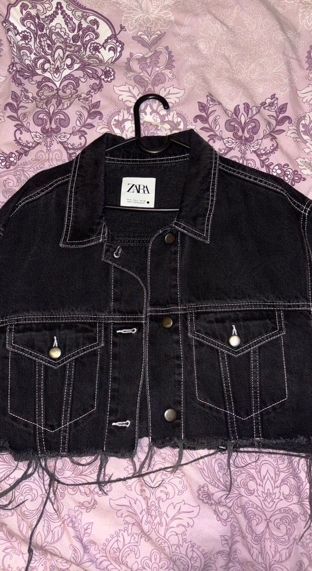 Zara Siyah Nakışlı Düğmeli Denim Ceket