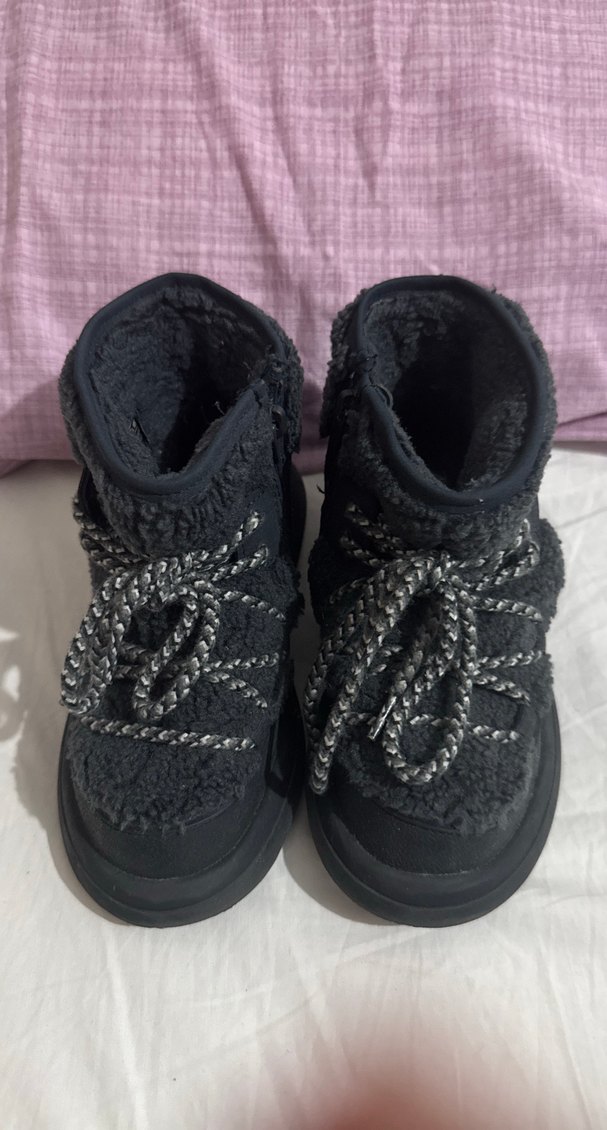 Siyah renkli, örgü detaylı ve yumuşak peluş astarlı kadın botları. Düz tabanlı, rahat dış mekan kullanımı için uygundur. Trendy casual tarzda.TERTEMİZ BİRKAÇ DEFA GİYİLDİ HİÇBİR DEFORME YOK ZARA marka 29 numara kız erkek çocuk ikiside giyebilir
