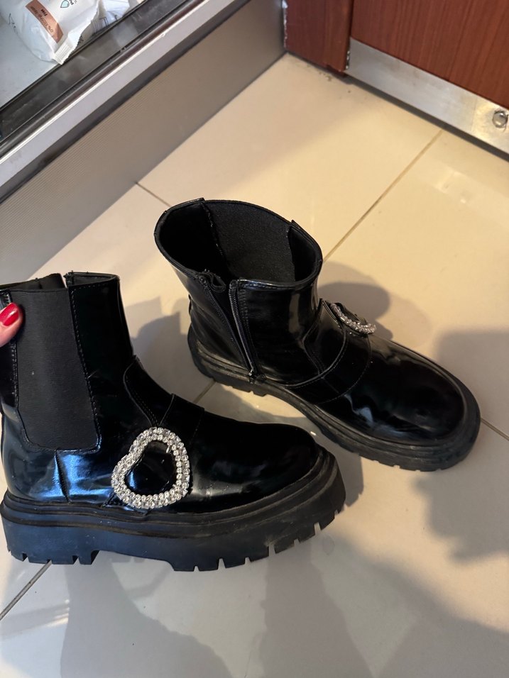 Zara Siyah Parlak Bantlı Gotik Platform Bot