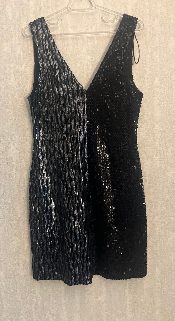 Zara Siyah Pul Payetli V Yakalı Midi Abiye Elbise