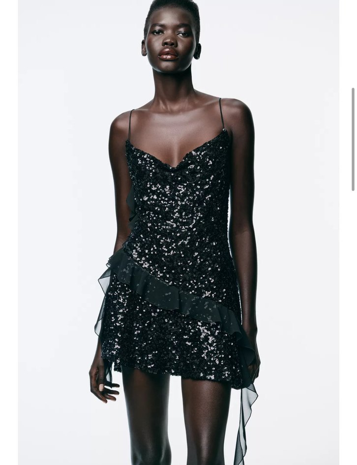 Zara Siyah Pullu Kısa Fırfırlı Elbise