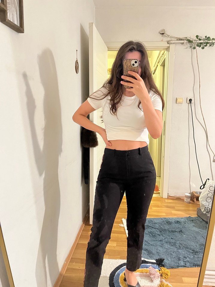 Zara Siyah Slim Fit Midi Boyfriend Pantolon