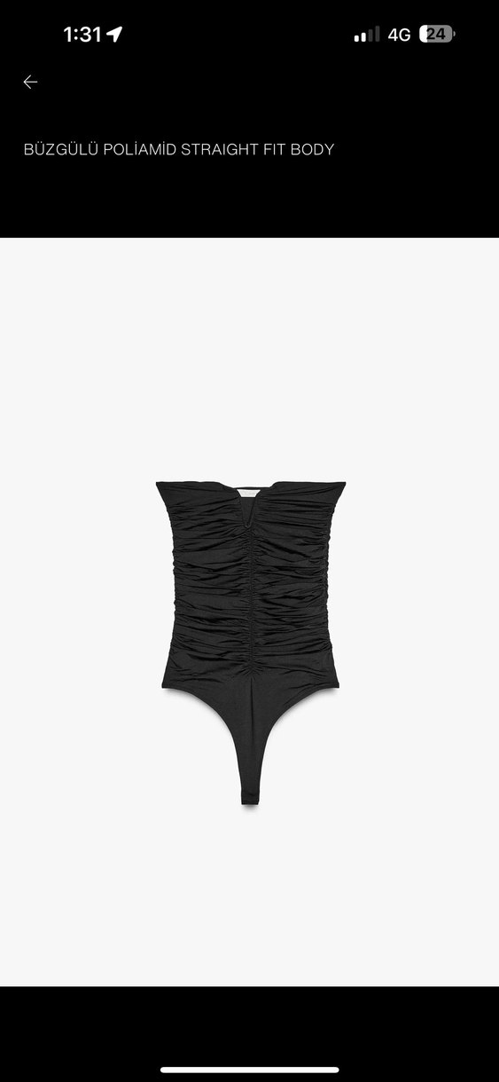 Pilili detaylara sahip, straplez yaka ve siyah keten kumaştan mini, dar kesim bluz. Cesur goth tarzına uygun. ✨
