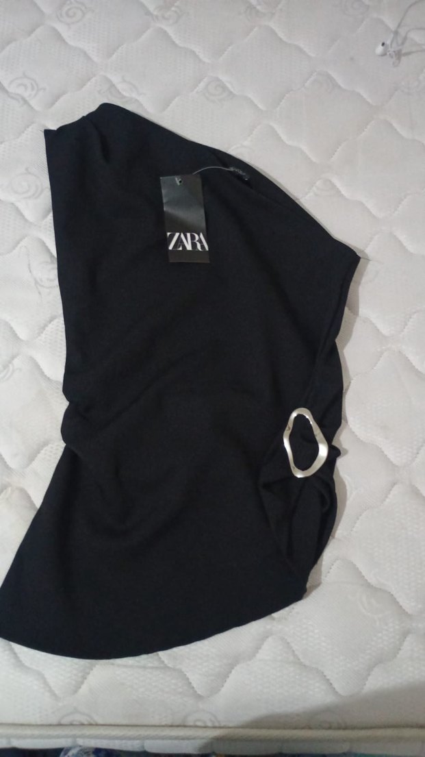 Zara Siyah tek omuzlu asimetrik vücuda tam oturan bluz çok güzel