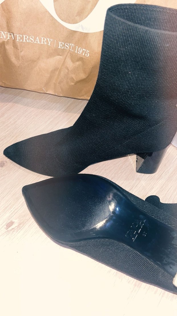 Zara siyah topuklu kumaş bot