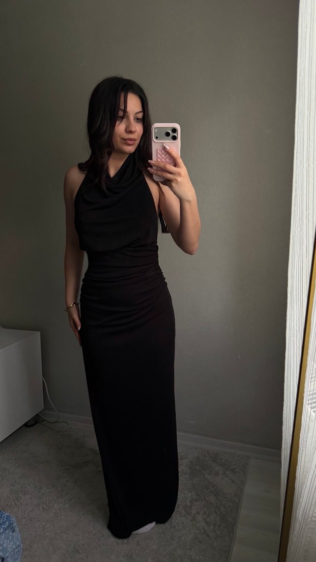 ZARA Siyah Uzun Drapeli Kadın Elbise