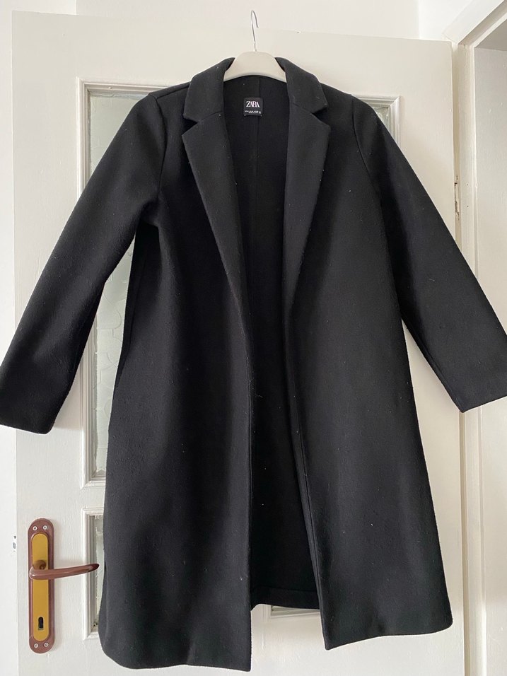 Zara markasına ait siyah renkte, uzun ve düz kesim kaban. Yumuşak ve sıcak tutan kumaştan yapılmıştır, klasik yaka ve uzun kolludur. 3. Resimde izmarit değmiş küçük bir defosu var onun dışında bazı yerlerinde tülenmeler mevcuttur