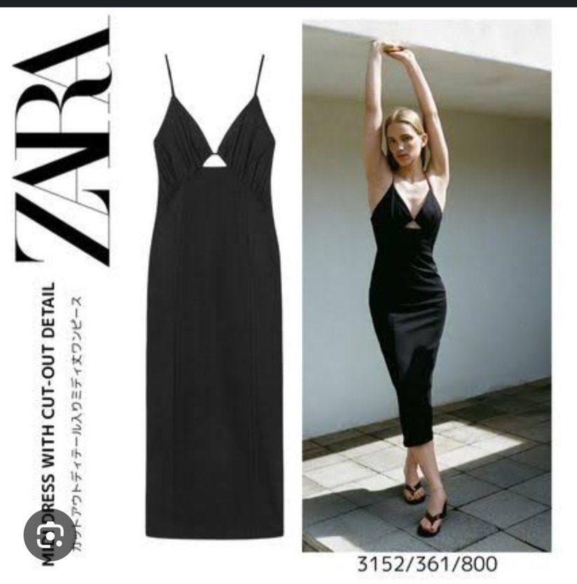 Zara siyah V Yaka Uzun İnce Askılı Elbise