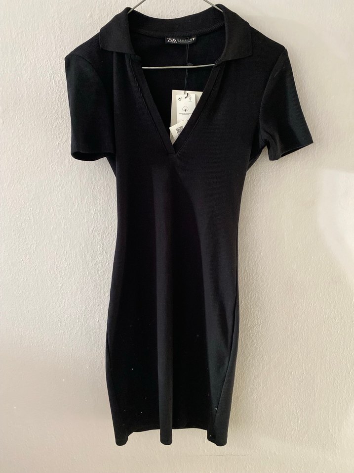 Zara Siyah V Yakalı Midi Günlük Elbise