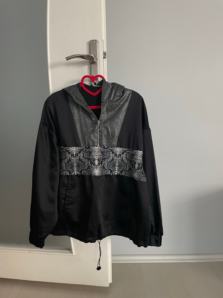 zara markadır hiç kullanılmadı sorunu yoktur Siyah kapüşonlu uzun kollu ve bol kesimdir. Yılan desenli kemer detayıyla gotik sokak tarzını yansıtır.