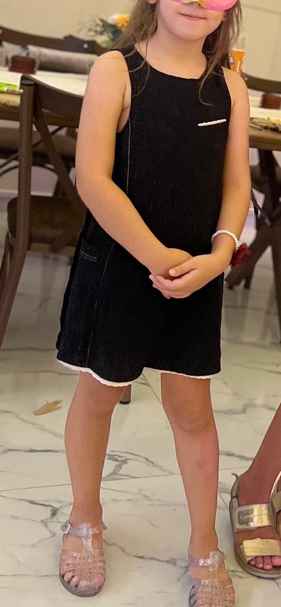 Siyah denim kumaştan, kolsuz ve yüksek yakalı, midi boy ve vücuda oturan kesim elbise. Günlük sokak stiline uygun, desen içermeyen şık tasarım.