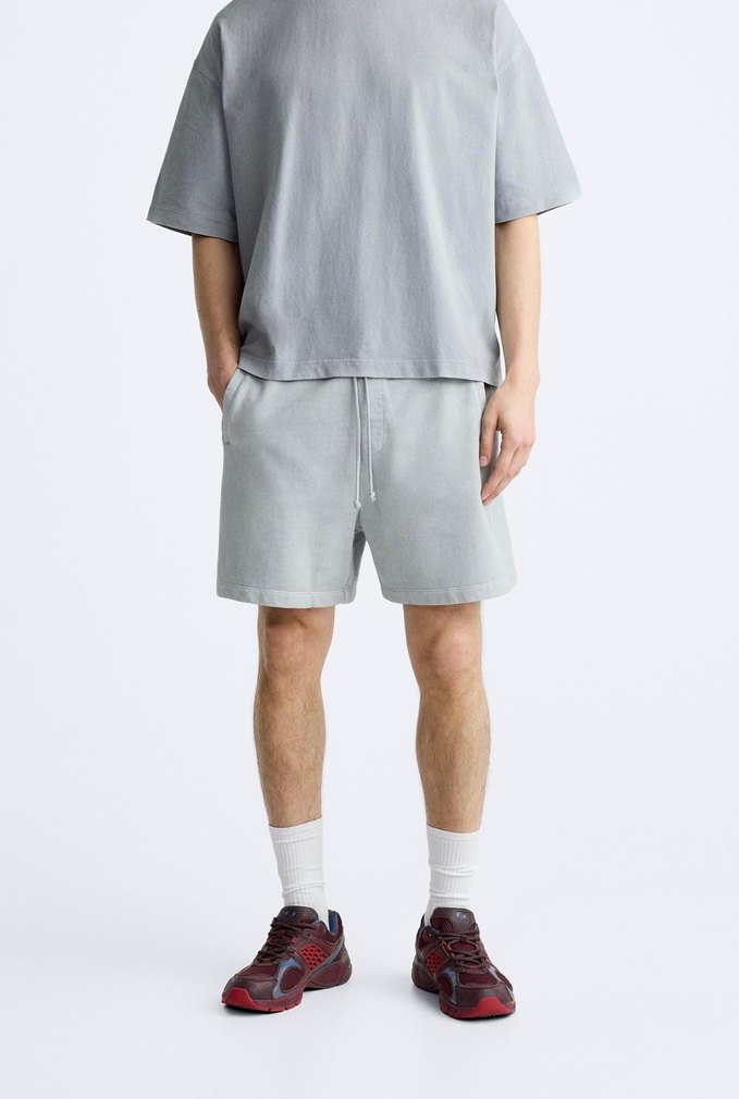 Zara Soluk Efektli Fit Bermuda -ürün sıfır etiketli duruyor.