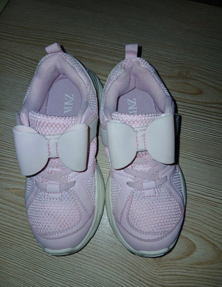 Pastel pembe renkte, fiyonkdetaylı cırt cırtlı kız çocuk spor ayakkabısı, rahat kauçuk tabanlıdır. 28 no