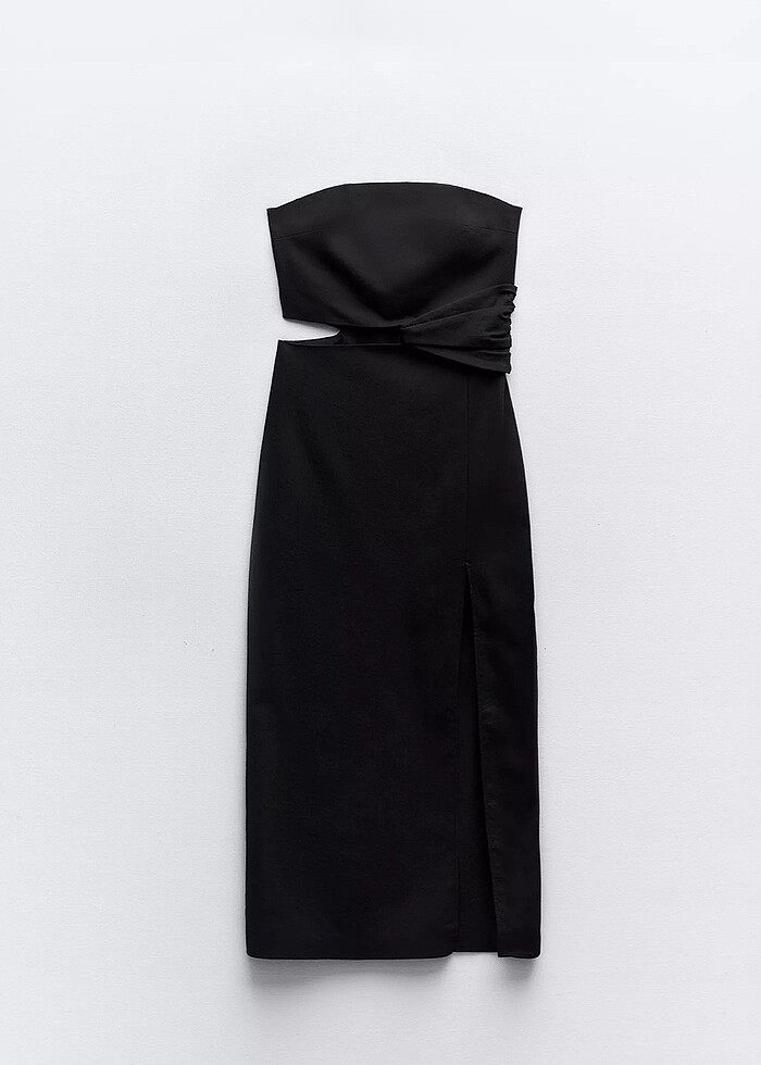 ZARA STRAPLEZ KETEN MİDİ ELBİSE