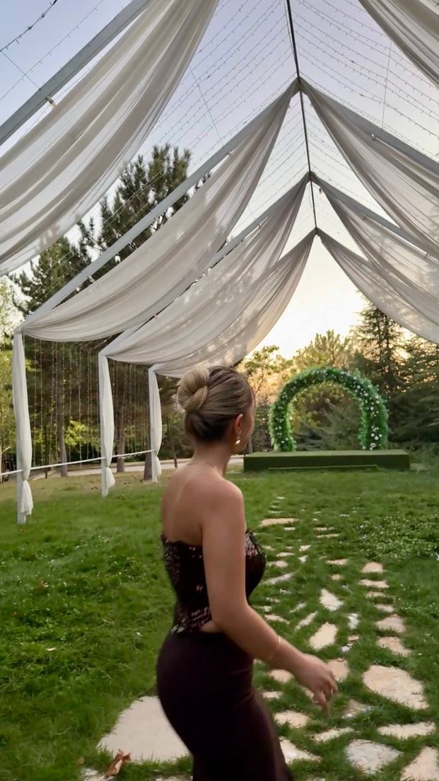 Zara straplez pullu payetli midi abiye elbise
