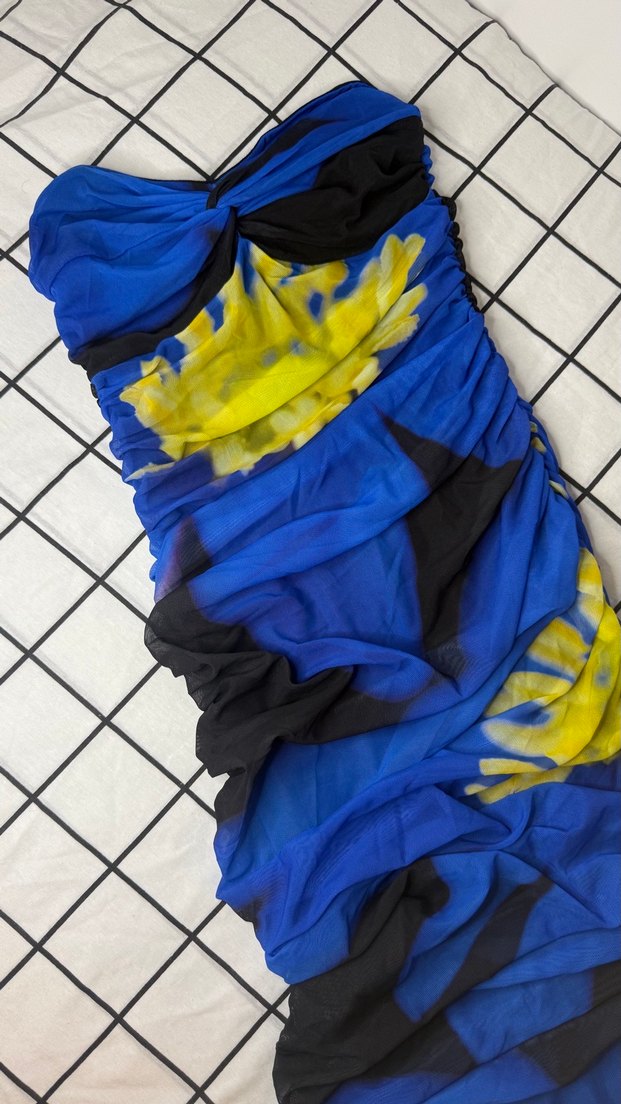 İhracat fazlası Zara marka 0 ürün, mağaza ürünüdür. S-M bedenleri mevcuttur. Straplez, drape, tül elbise midi boydur. İç astarı nevcuttur.