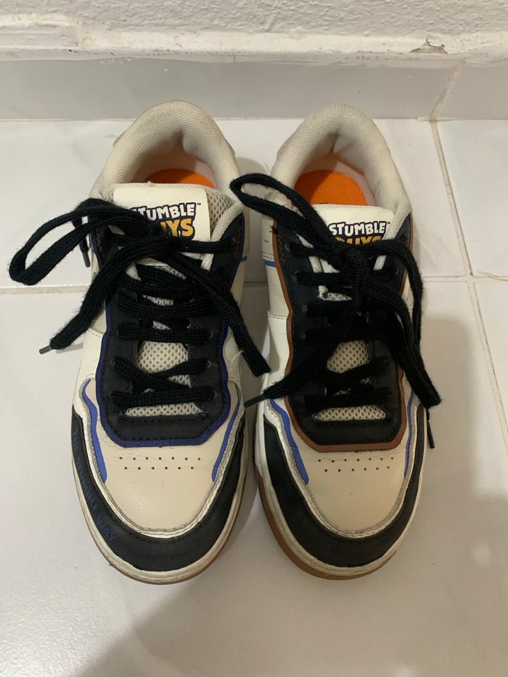 Stumble Guys figürlü Beyaz siyah renklerde, bağcıklı ve baskılı detaylı erkek çocuk sneaker.