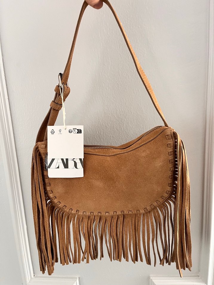 Orjinal Zara Süet Püsküllü Çanta M etiketli ürün