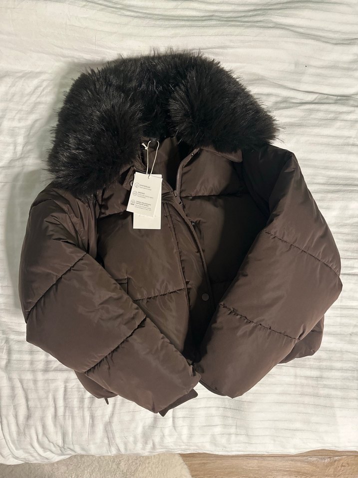 Zara suni kürk yakalı kapitone bomber ceket