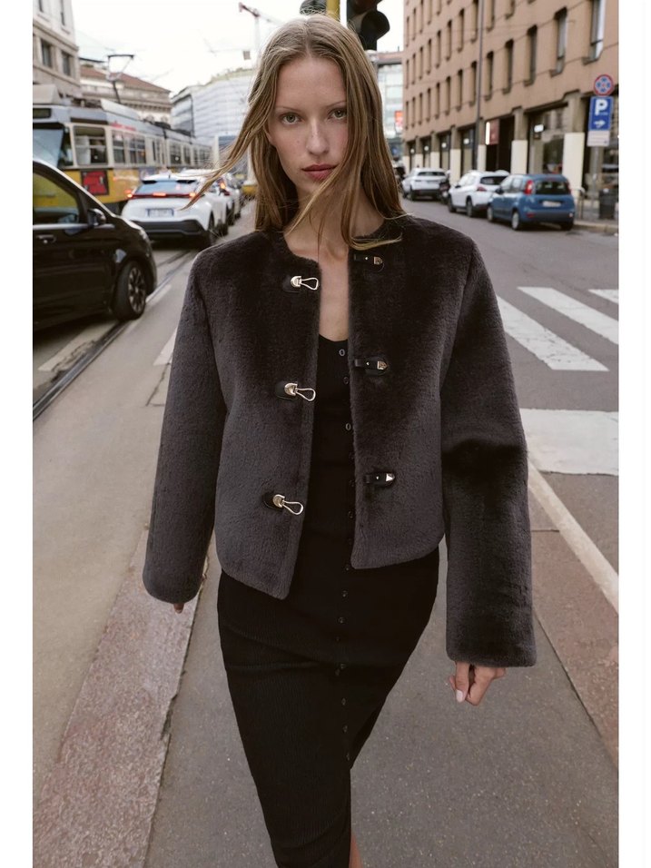 Zara Süslü Düğmeli Suni Kürk Ceket