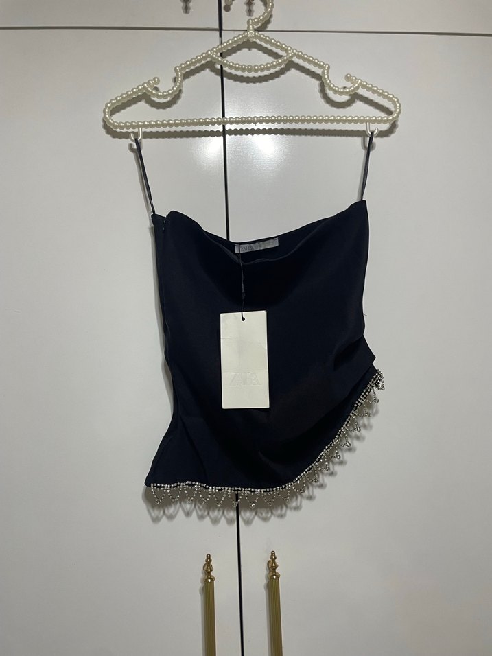 Zara taşlı Detaylı Siyah Mini Straplez Bustiyer